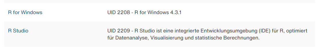 - Die Lernenden können den DAP navigieren um relevante Software selbst auf ihren Arbeitsgeräten zu installieren. Sie können sich das R-Bundle aus dem Serviceportal bestellen und wissen wie sie Probleme melden.